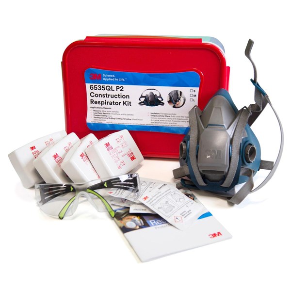-Convenient respiratory kit designed for environments containing dust/particles/silica. The kit comes complete with the 3M™ Half Face Reusable 6500QL Series Respirator for comfort and durability. Kit Contains